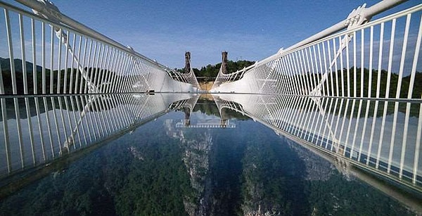 В лесном парке Чжанцзяцзе, расположенный в провинции Хунань, также имеется вызывающий головокружение мост со стеклянным дном.