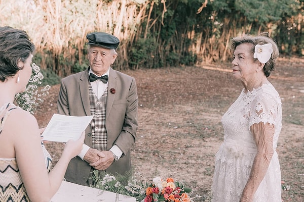 Дона Роза (Dona Rosa) и Сиу Руссо (Seu Rousso) из Бразилии поженились в далеком 1957. Это было простое семейное торжество в дедушкином саду с праздничным тортом, приготовленным тетушкой, и свадебным платьем, сшитым заботливыми руками крестной матери невесты. С тех пор прошло более полувека счастливой семейной жизни 'душа в душу'. Настоящая любовь послужила надежным фундаментом семейного древа: у Доны и Сиу 16 внуков и 4 правнука!