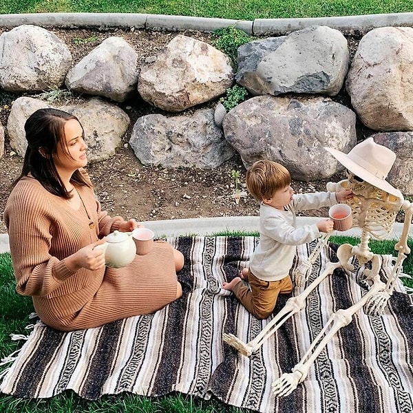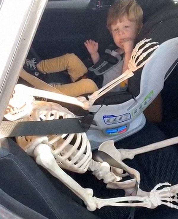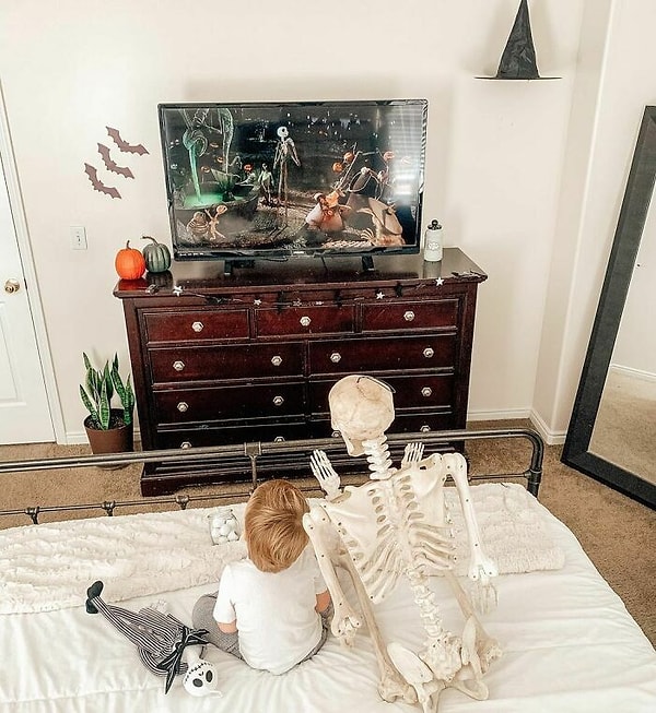 Малыш подружился со скелетом, которого купили его родители в качестве украшения на Хэллоуин