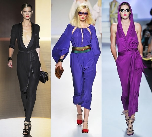 Выбирайте модели с широкими брюками и соблазнительным V-образным декольте.