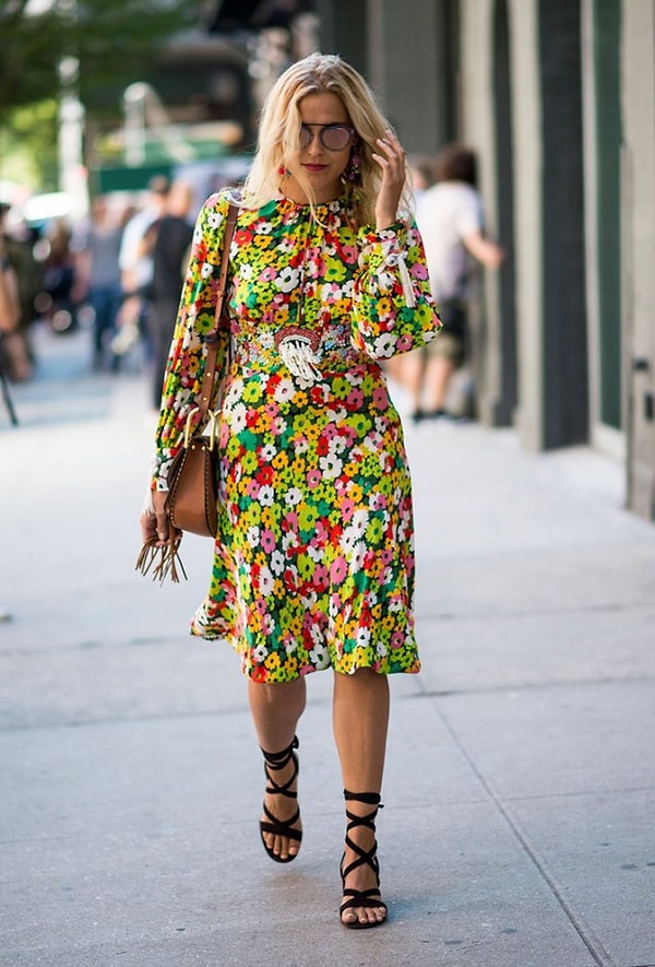 Чем ярче платье, тем лучше. Настало именно то время, когда можно носить яркие цветочные платьишки и не чувствовать себя звездой сельского клуба.