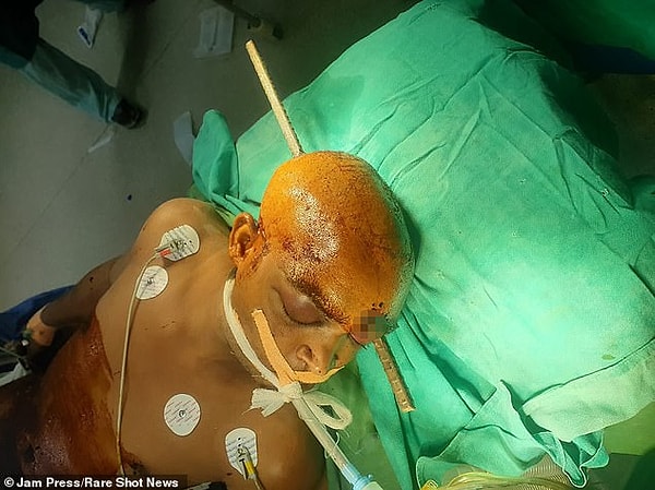 Старший нейрохирург доктор Абхинав Гупта провел экстренную операцию, в ходе которой ему удалили большие части черепа, чтобы предотвратить дальнейшее повреждение мозга.