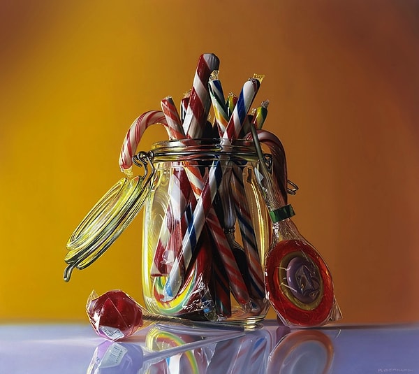 Родившийся в 1974-ом году итальянец Роберто Бернарди (Roberto Bernardi) получил образование по специальности классическая живопись, но после долгих лет, проведенных 'в пыли' искусства Ренессанса, он посветил себя гиперреалистической живописи. Его картины, в которых он отражает объекты гораздо реальнее, чем фотографии, могут ввести Вас в заблуждение. Роберто Бернарди так же является мастером в изображении объектов, воды и других жидкостей. Если Вы хотите увидеть все произведения этого талантливого художника, пройдите по следующей ссылке: