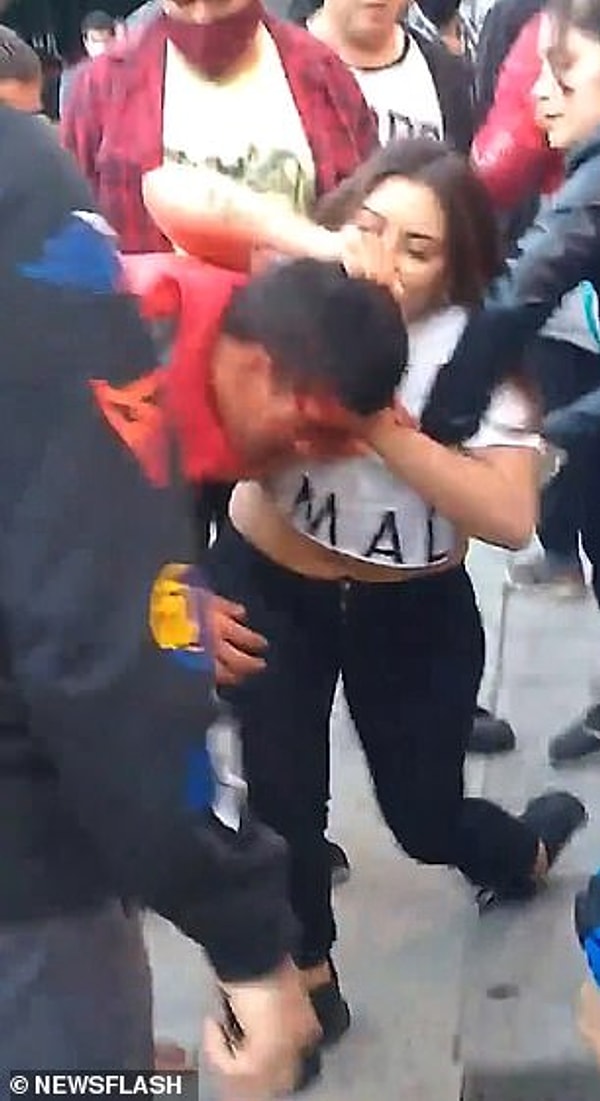 Местные СМИ сообщают, что Бриса держала мужчину за голову, взяла его за волосы и кричала ему в ухо, пока у него шло кровотечение.