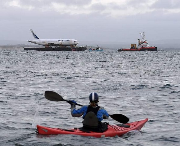 По реке воздушное судно было доставлено на курорт Слайго. На поездку 60-тонного Боинга пришли посмотреть многочисленные зеваки.