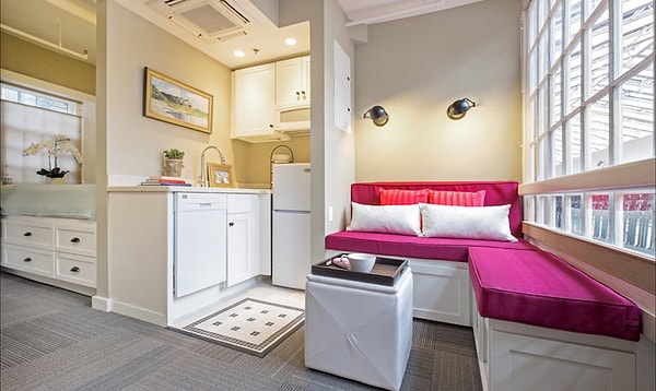 4. В каждой мини-квартире можно найти встроенную кровать, ванную комнату, кухню, оборудованную холодильником, посудомоечной машиной и микроволновой печью, а также диваны с отсеком для хранения.