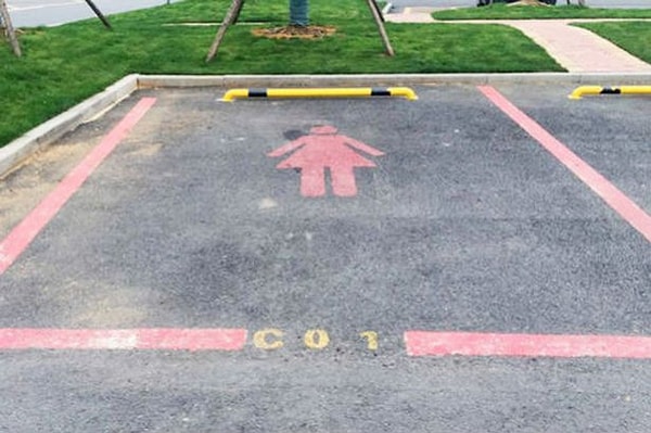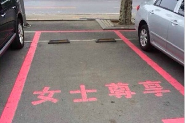 В городе Ханчжоу (Hangzhou) открылись новые парковочные места, окрашенные в „женский“ розовый цвет. Как сообщает местная государственная газета Qianjiang Evening News, «более широкие парковочные места предназначены для женщин, чьи водительские навыки недостаточно хороши». Пань Тьетун (Pan Tietong), ответственный за проект, назвал это „людским мнением“.