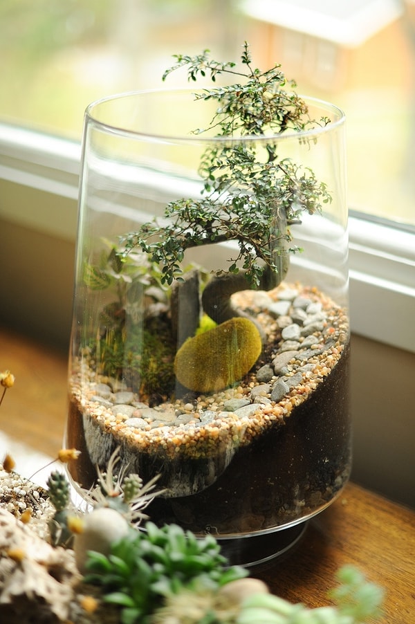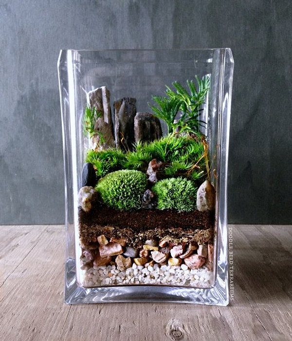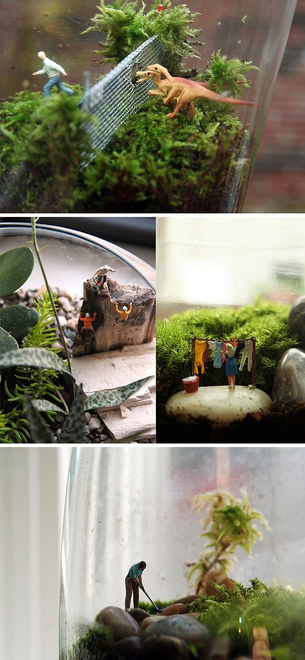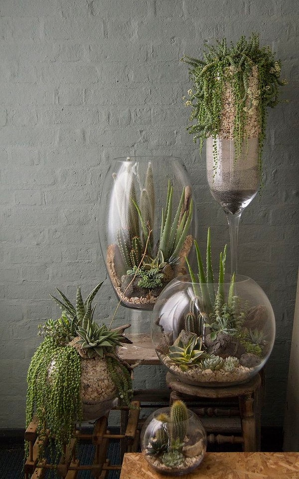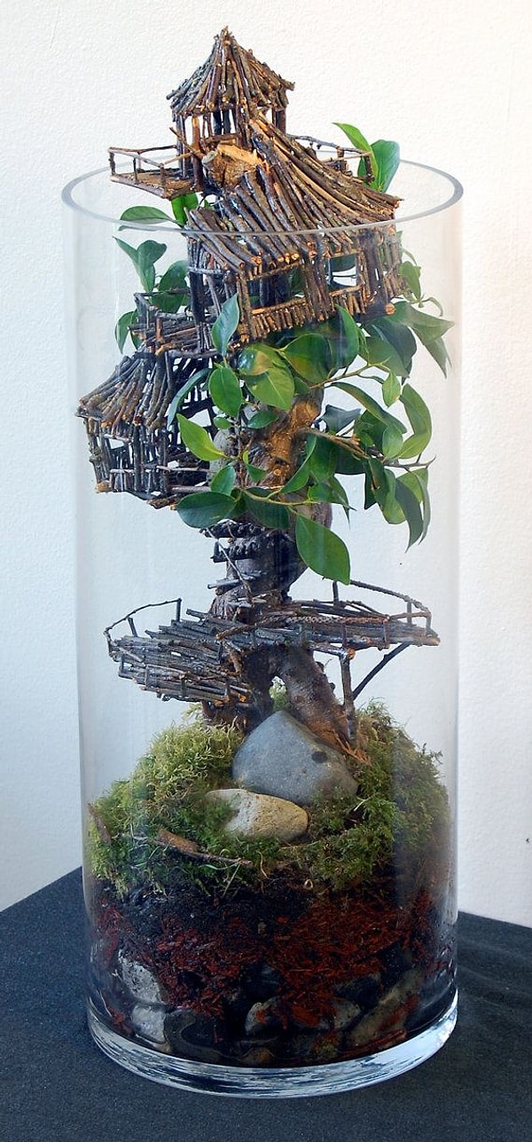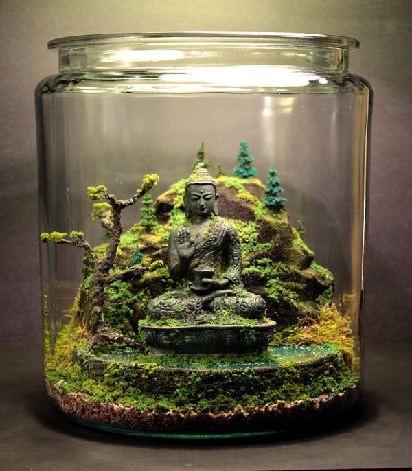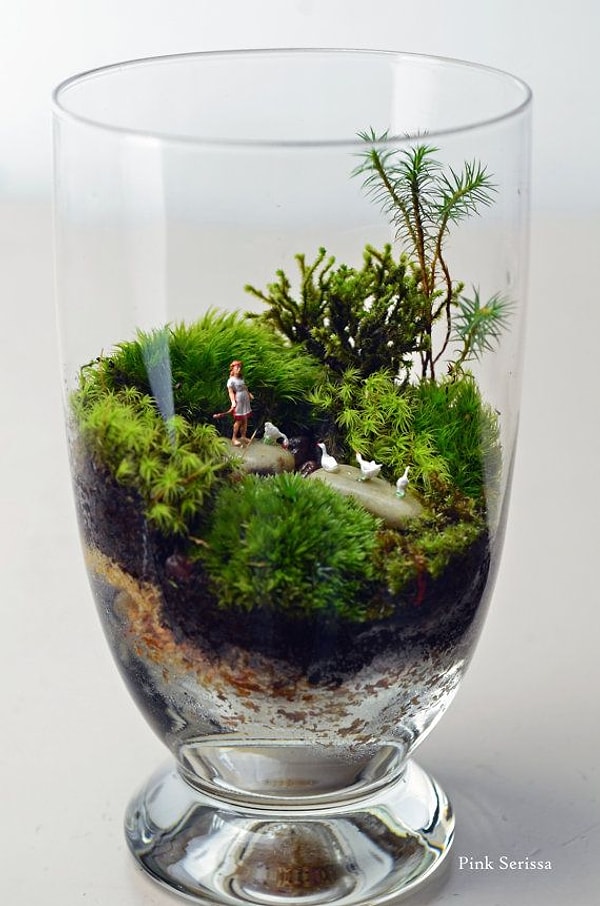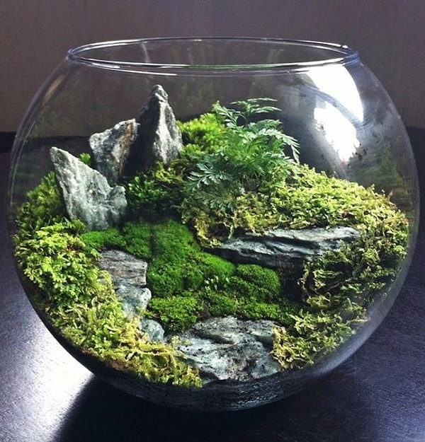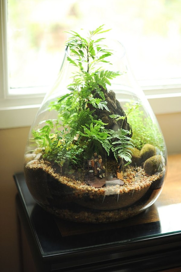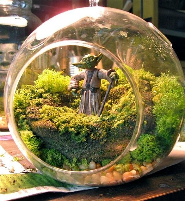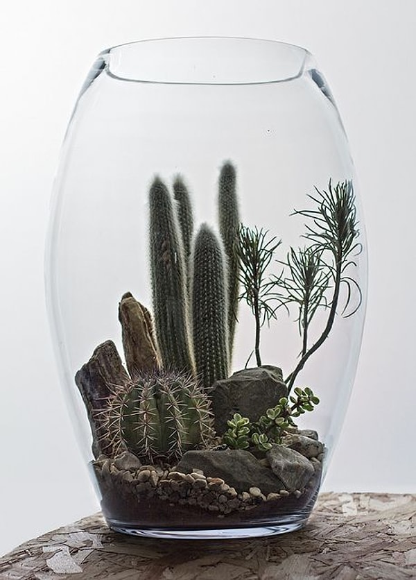 'Террариум' происходит от слова 'terrain', что означает 'местность' и представляет собой небольшую микросистему, созданную в стеклянных или других вазах и бутылках, в мини-аквариумах и т.д. В террариуме размещают растения, цветы и понравившиеся фигурки. Все это выполняется в определённом понравившемся вам стиле. Популярными на сегодняшний день являются концепции пустыни, 'Звездных войн', 'Хоббита' и прочие. Предлагаем взглянуть на готовые варианты террариумов. Возможно, этот вид хобби заинтересует и вас!