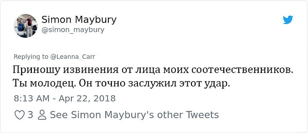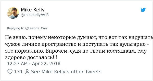 9. После того как адреналин кончился, она уже не была уверена в правильности своего решения, однако ее пост в Твиттере собрал более 25 тыс. лайков, как от женщин, так и от мужчин.