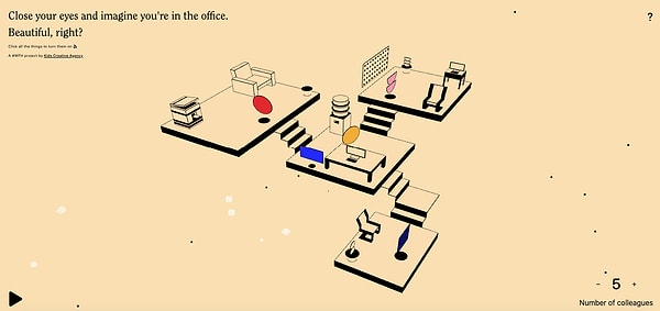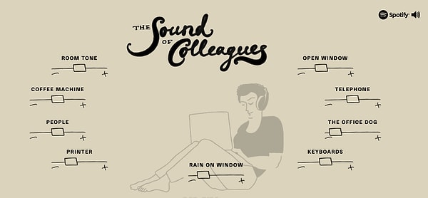 Сайт ‘The Sound of Colleagues’ (Звуки коллег) переносит почти каждый шум офиса в дом, поэтому сотрудники, которые покидают загруженный офис и вынуждены оставаться дома, не чувствуют себя одинокими и изолированными во время карантина. На сайте есть такие опции, как звуки в комнате, разговоры вокруг, уличный шум из открытых окон, собака в офисе, кофеварка, принтер, телефон, звуки клавиатуры и даже дождь, бьющий по стеклу. Каждый из вариантов может по желанию быть увеличен или уменьшен.