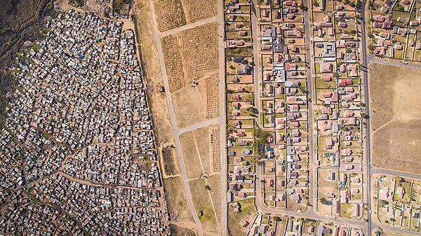 Ресурс Bored Panda предоставляет нашим читателям фотографии и видео Джонни Миллера из Кейптауна, который запечатлел с помощью дронов вопиющий контраст между внешним видом поселений европейцев и африканцев в Южной Африке. Напомним, до 1994 года эта страна проводила политику жёсткой расовой сегрегации, при которой чернокожее население практически не имело шансов обустроить свою жизнь. Разрыв в уровне жизни сохраняется до сих пор и только усугубляется расовой враждой и оттоком из страны белых специалистов, которые могли бы положительно повлиять на экономику и культуру страны.