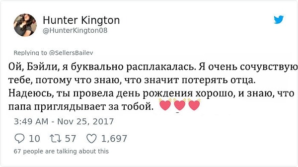 4. Вместе с цветами Бэйли получила открытку с пожеланиями от своего папы: