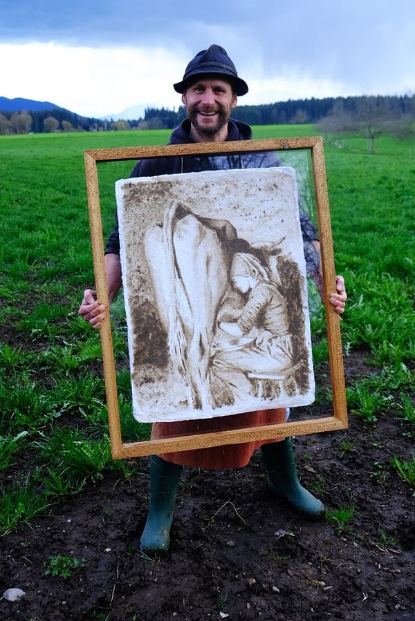 «Коровий навоз — это прежде всего: экологичность! Его можно использовать повторно», — сказал он Bavaria Insider. «Рисуя им, я хочу подчеркнуть идею цикла».