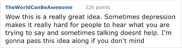 Этот маленький подарок так много значит для человека в депрессии! Все просто обалдели от этой идеи.