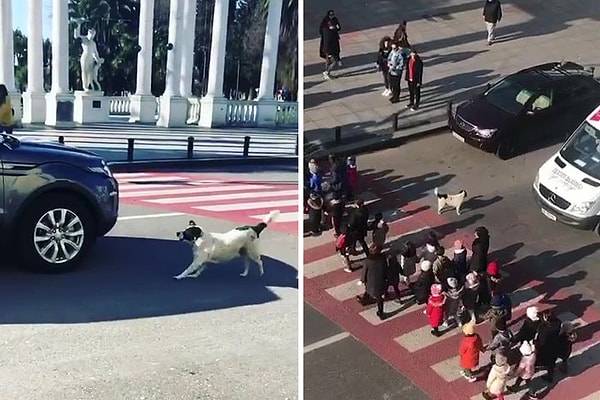 Видео, которое вы только что посмотрели, было снято в городе Батуми, расположенном в Грузии, парнем по имени Бека Цинадзе. На видео видно, как группа маленьких детей ждет, когда машины остановятся, чтобы они могли безопасно перейти дорогу. Но тут на помощь приходит таинственная собака и спасает положение, останавливая движение транспорта.