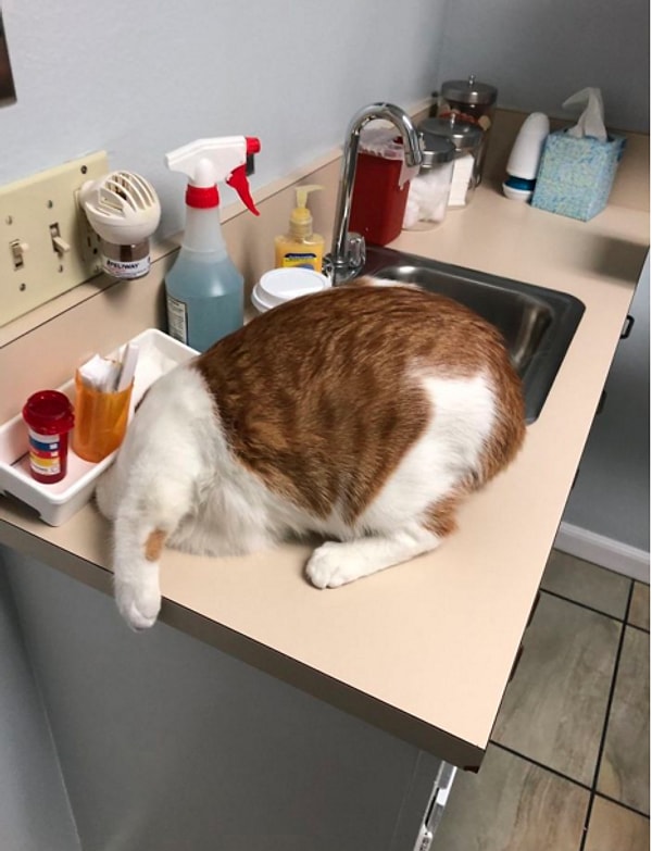 Креативная кошка! Прягнула в раковину, когда мы привели ее к ветеринару в первый раз.