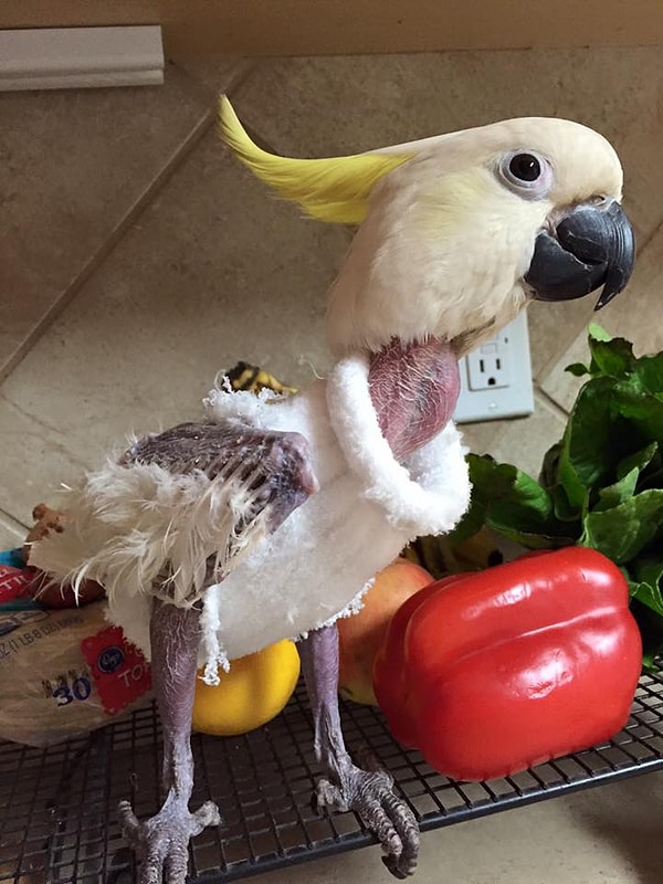 Пострадавшему от стресса какаду связали милые свитера