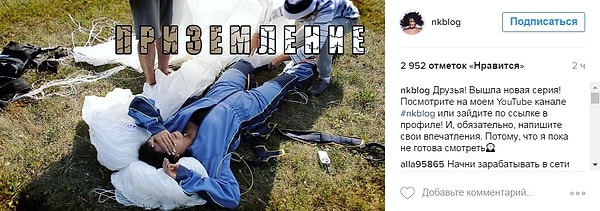 «В тот момент, когда ты на запаске летишь вниз, пробегает жизнь, как кинолента! А главное, ты не можешь остановить падение или задержать время... Пострадала правая нога, но огромное спасибо моему инструктору, который вовремя среагировал, и я осталась жива. Друзья! Не все мечты нужно осуществлять в жизни. Я снимала блог в этот момент», - сообщила Настя.
