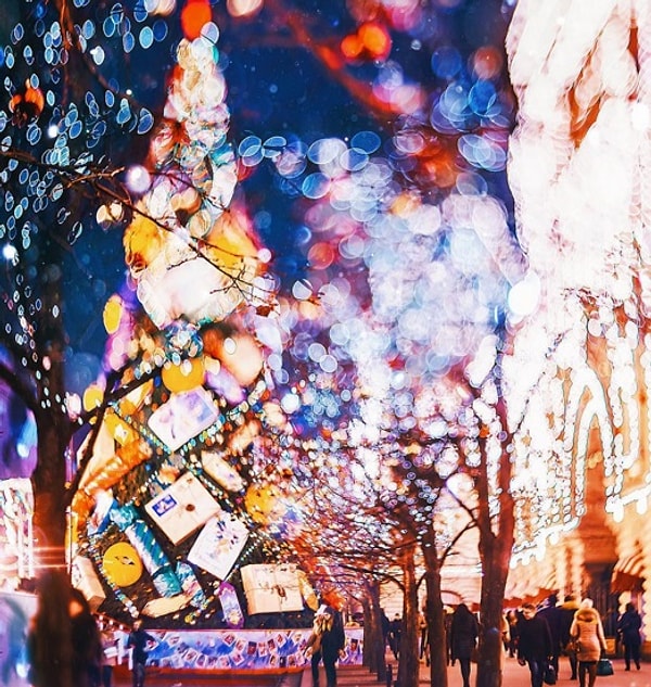 Фотограф Кристина Макеева мастерски использует свою камеру, чтобы запечатлеть волшебные виды столицы России в зимние холода. В один из самых больших православных праздников, 7 января, она решила отразить всю красоту Москвы во время празднования Рождества Христова. На ее фотографиях можно увидеть Красную площадь и Кремль во время рождественских гуляний, а также сочетания буйства красок, веселых огоньков гирлянд и мягких хлопьев снега.