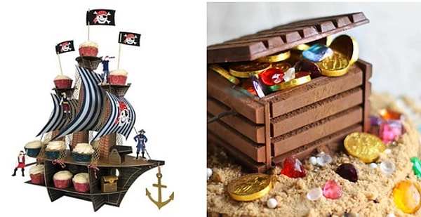 Капкейки можно сделать с морской тематикой, а конфеты и шоколадные медальки спрятать в специальные сундучки.