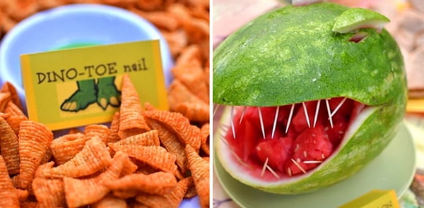Из чипсов получатся отличные ногти динозавра, а из арбуза - голова.