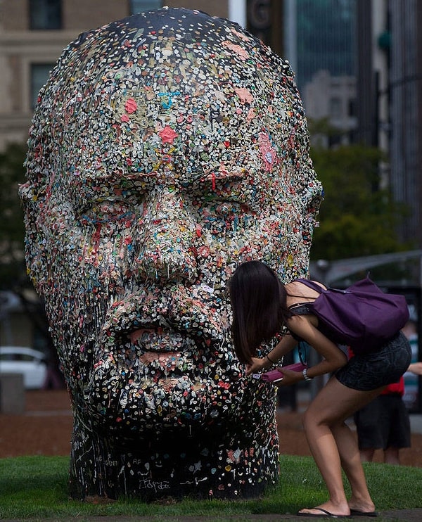 12. Огромная скульптура, которая была установлена для того, чтобы прохожие приклеивали на нее жевательную резинку