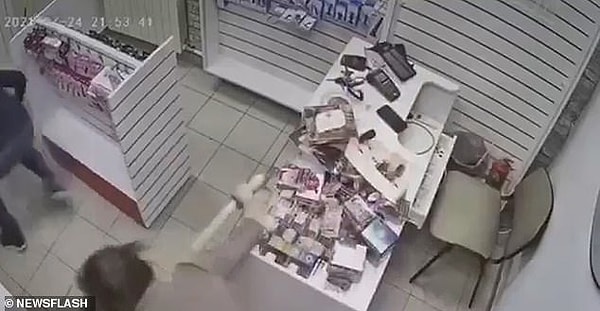 Видео стало вирусным, набрав 135 000 просмотров в социальной сети ВКонтакте, где можно увидеть, как женщина работает за прилавком, когда входит мужчина в маске.