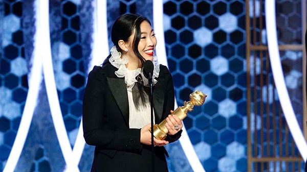 Awkwafina, получившая награду за лучшую женскую роль в фильме 'Прощание' (Farewell), стала первой азиаткой, получившей эту награду в истории 'Золотого глобуса'.