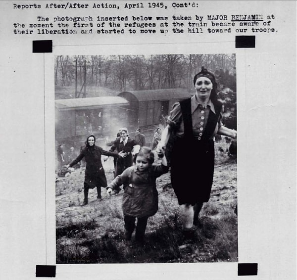 Поезд Холокоста, остановленный американскими солдатами в 1945 году. Заключенные бегут навстречу свободе.
