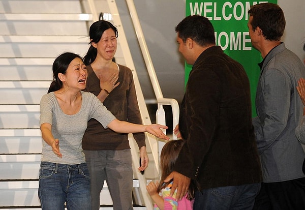 Журналисты Эуна Ли (Euna Lee) и Лаура Линг (Laura Ling) встречаются со своими семьями после 12-летнего плена.