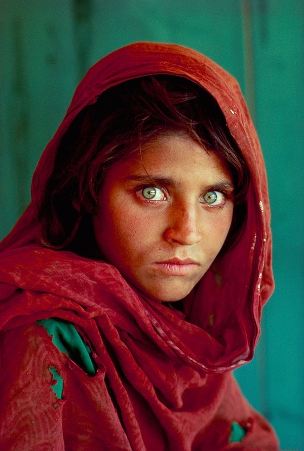 Шарбат Гула. Журналист Стив Маккарри (Steve McCurry) сфотографировал Гула в лагере для беженцев на территории Пакистана, когда ей было 12 лет.