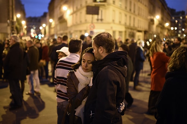 Около ресторана “Le Carillon” в Париже, на следующий день, как произошли террористические атаки. 14 ноября, 2015 г.