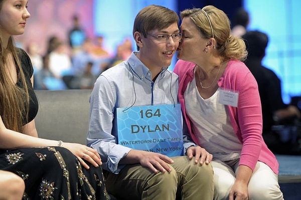 Дилан О’Коннор из Уотертауна со своей мамой после того, как он неправильно проспелинговал слово «археология» на национальном конкурсе “Spelling bee”. Мэриленд, 28 мая.