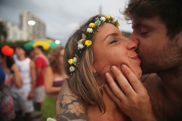 Во время уличного парада «блоков», когда празднуют дни перед Карнавалом. Рио-де-Жанейро, Бразилия, 7 февраля, 2015 г.