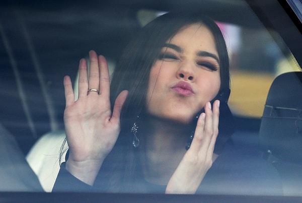 Мисс Вселенная, Паулина Вега, колумбийская модель посылает воздушный поцелуй из своей машины после того, как она посетила пациентов военного госпиталя. Богота, Колумбия, 28 апреля, 2015 г.