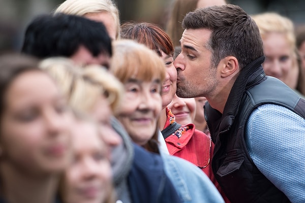 Йо Вайль установил новый рекорд по скоростным поцелуям, поцеловав 63 женщины за 30 секунд. Кельн, Германия, 1 сентября, 2015 г.