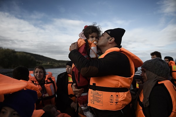 Беженцы и эмигранты высаживаются на греческий остров Лесбос после того, как они пересекли Эгейское море. 3 декабря, 2015 г. Более 886,000 эмигрантов прибыли в Европу по морю.