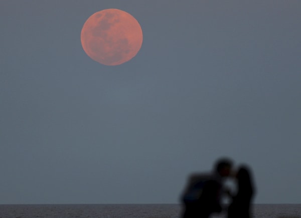 Во время восхода суперлуны в небе Рио-де-ла-Плата. Буэнос-Айрес, Аргентина, 27 сентября, 2015 г.