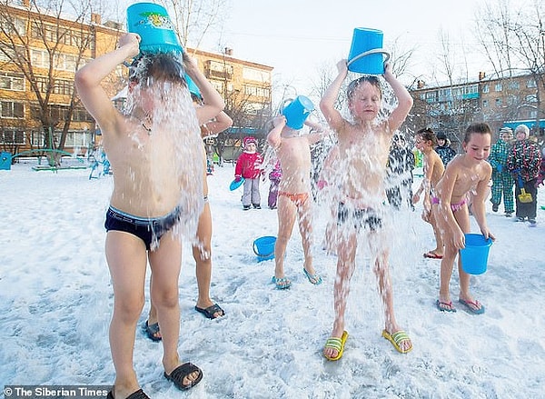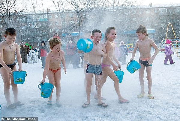 Сибирские дети каждое утро обливают себя ведрами ледяной воды в рамках учебной программы, чтобы защититься от инфекций