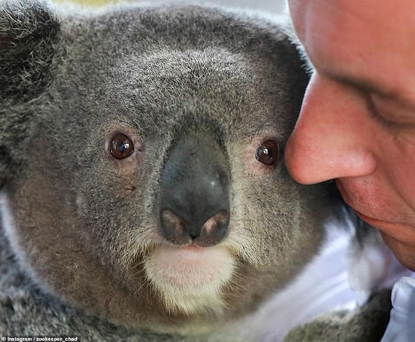 На этой трогательной фотографии Чад обнимает коалу Арчера в свой день рождения в прошлом году в парке дикой природы Фезердейл в Сиднее.