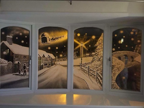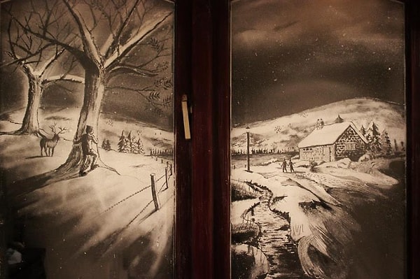 Вот уже 8 лет мужчина из Великобритании рисует новогодние картины с помощью снежного спрея для окон. Давайте насладимся снежными сказками от последователя Деда Мороза.