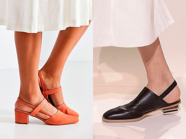 Что тут у нас? Ах да, это же туфли с закрытым носком и придерживающим пятку ремешком - слингбэки. Впервые моду на них ввёл Кристиан Диор, показав миру в 1947 году коллекцию платьев нью-лук.