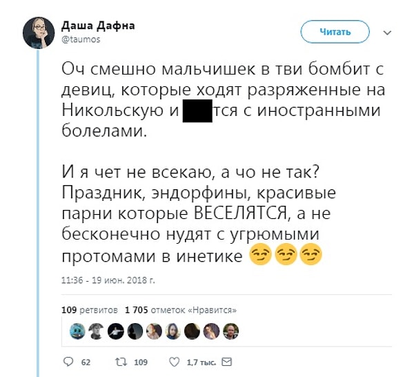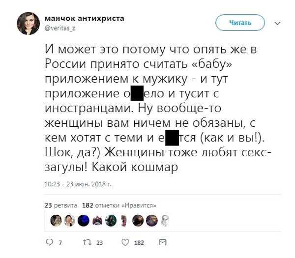 Гул по поводу того, что наши русские девушки гуляют с иностранцами во время ЧМ, не умолкает в соцсетях ни на секунду.