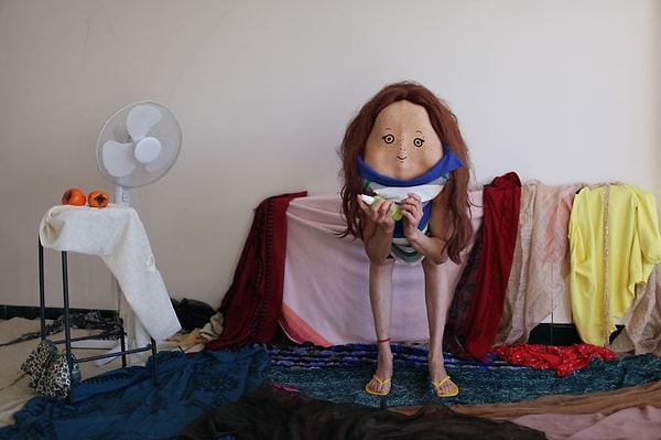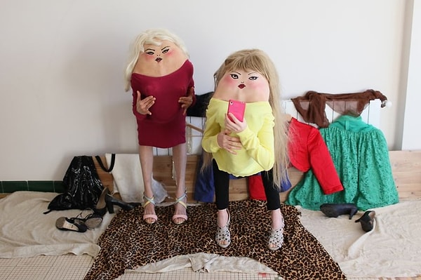 Но и тут ей недостаточно простых фото. Девушка превращает своих домочадцев и знакомых в странных существ, просто рисуя им лица на спине.