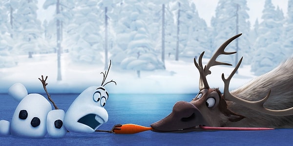3. За чем тянутся Свен и Олаф в этой сцене "Холодного сердца"?