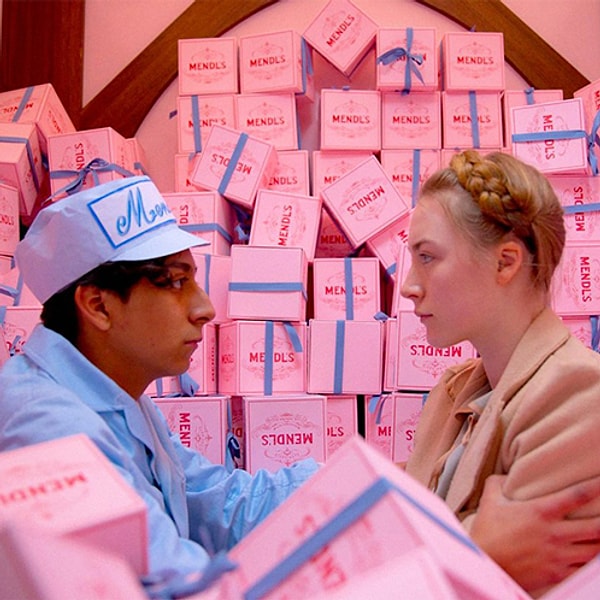 3. Какого цвета были коробки в данном кадре из фильма "Отель Гранд Будапешт"?