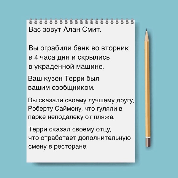 Предлагаем вам поиграть. Прочитайте историю внизу, кликнув на картинку, и постарайтесь зафиксировать в памяти все подробности.