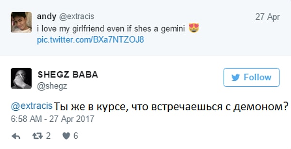 По-моему, это просто чума! Ее парень выложил фото в интернет, отшутившись, что он любит ее, даже если она Близнецы, намекая на знак Зодиака.