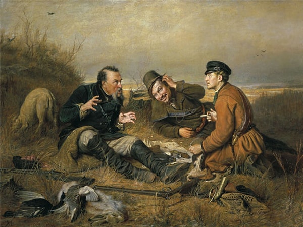 4. На картине Василия Перова "Охотники на привале" тоже не достает одной детали. Какой?