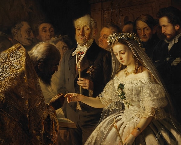 3. Чего не хватает на картине Василия Пукирева "Неравный брак"?